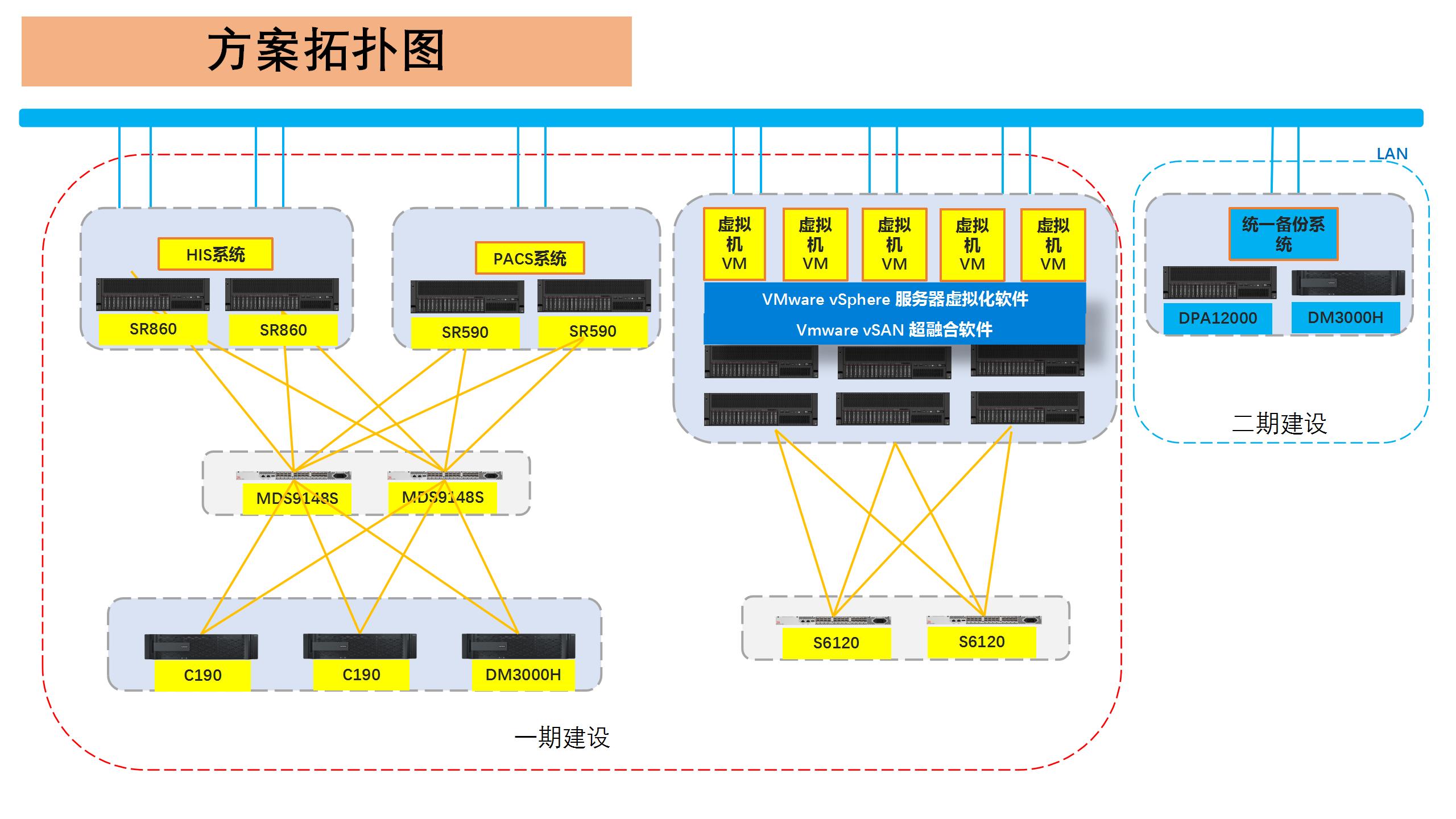 吳起縣人民醫(yī)院是一所集醫(yī)療、教學(xué)、科研、防保、急救為一體的綜合性二級甲等醫(yī)院,醫(yī)院承擔著該縣及周邊四縣近30萬人的診療保健任務(wù),是吳起縣最大的綜合性醫(yī)院。為深化醫(yī)藥衛(wèi)生體制改革,推進醫(yī)共體建設(shè),提高醫(yī)院各項工作的效率和質(zhì)量,助力智慧型醫(yī)院落地,吳起縣人民醫(yī)院急需對原有業(yè)務(wù)系統(tǒng)進行升級改造。 作為醫(yī)院信息化管理的基礎(chǔ)和骨架,HIS貫穿醫(yī)療流程、人員配置、患者就診信息、藥品銷售、庫存情況、營業(yè)狀況統(tǒng)計等全部模塊,是醫(yī)院統(tǒng)籌管理好“人-財-物“工作的基礎(chǔ),同時吳起縣人民醫(yī)院的設(shè)備上還運行著 LIS實驗室信息管理系統(tǒng)、PACS醫(yī)學(xué)影像存檔與通訊系統(tǒng)、手麻、體檢等一系列臨床應(yīng)用,由于設(shè)備老舊,醫(yī)院面臨高峰時段無法滿足使用需求,存儲故障率較高,數(shù)據(jù)安全威脅等諸多問題。基于吳起縣人民醫(yī)院的實際需求,在預(yù)算非常有限的情況下,藍島科技攜手聯(lián)想提供了令用戶滿意的解決方案,方案以聯(lián)想ThinkSystem SR860作為HIS系統(tǒng)服務(wù)器,SR860采用英特爾至強可擴展處理器,為HIS系統(tǒng)的運行提供了卓越的速度和可靠性;部署2臺NetApp C190通過SnapMirror-Business Continuity方式實現(xiàn)存儲級雙活;部署1臺DM3000H主要運行PACS數(shù)據(jù)庫,未來通過SnapMirror,組成高可用環(huán)境;以6*VX5520構(gòu)建基于vSAN的超融合虛擬化資源池,搭載起吳起縣人民醫(yī)院的其他業(yè)務(wù)系統(tǒng),實現(xiàn)統(tǒng)一管理,彈性調(diào)度,靈活分配。
